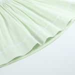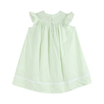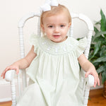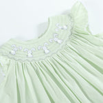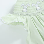 Let your little one hop around in style in this absolutely adorable Light Green Bunny Smocked Bishop Dress. The light green color is perfect for spring, while the pretty bunny embroidery and pom pom detail add playful style. Any little girl will be hoppy to add this cute dress to their closet.